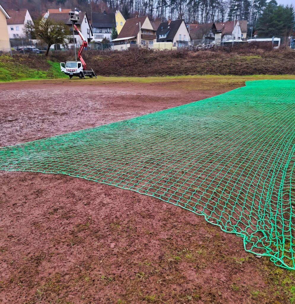Ebenfalls erneuert wurden Teile des Ballfangnetzes im Stadion am Neding hinter dem Tor zur Straße Im Tal hin. Das Fangnetz war nach langen Jahren defekt und musste unbedingt erneuert werden.