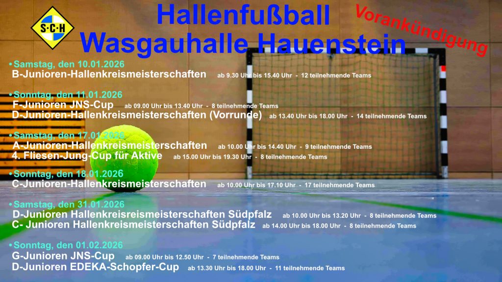Die Freunde des Hallenfußballs kommen in diesem Winter erneut auf ihre Kosten. Insgesamt 10 verschiedene Hallenturniere werden im Januar und Februar 2026 ......