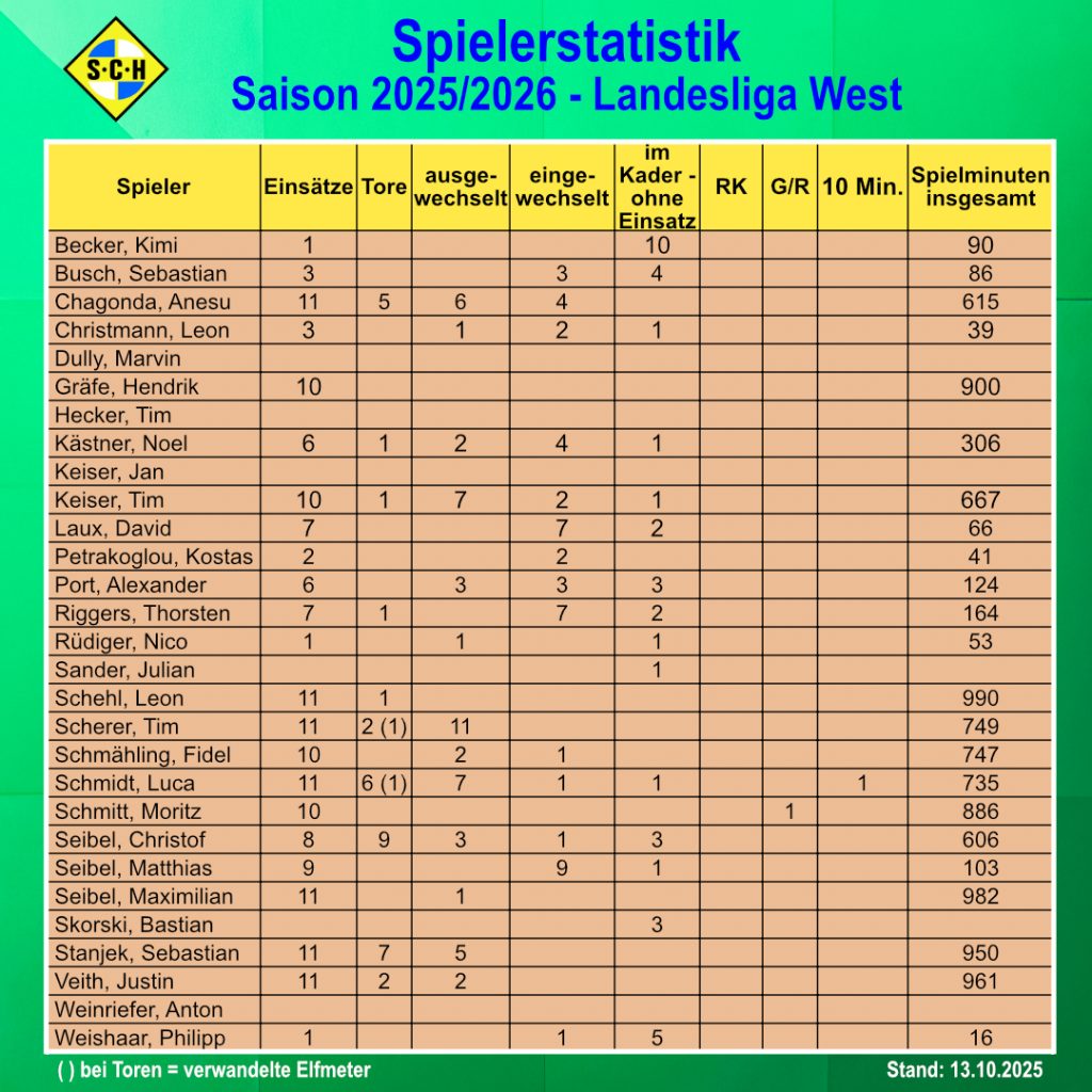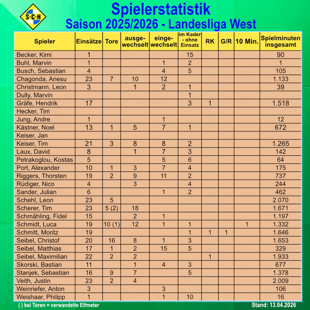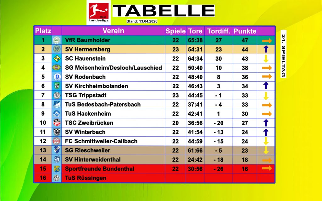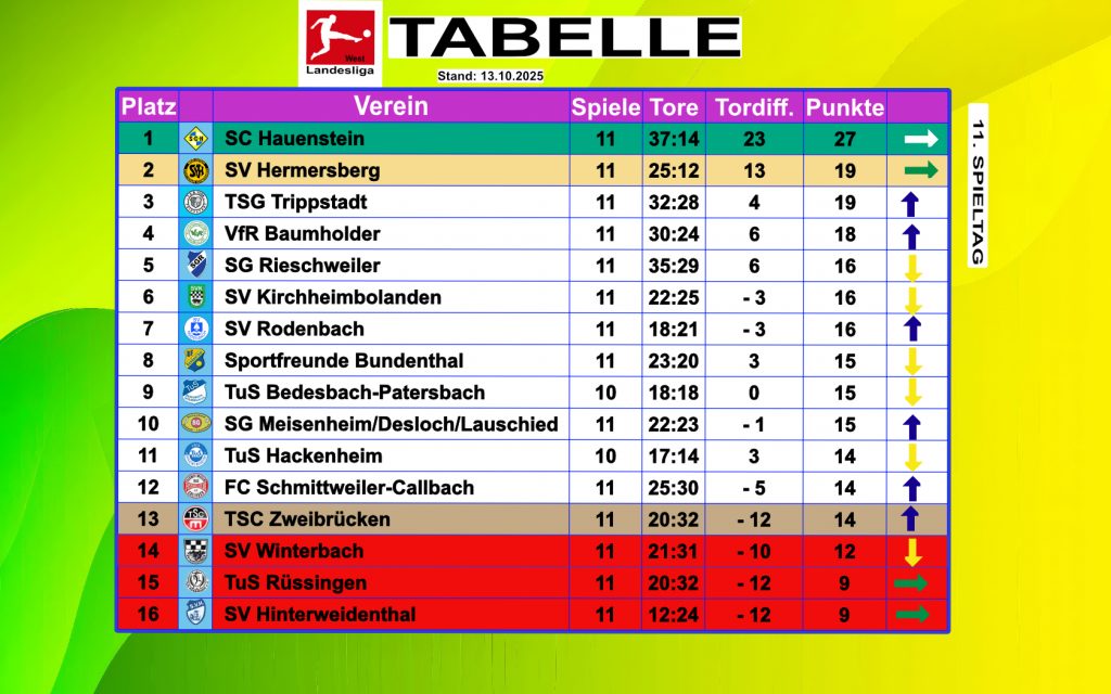 Die aktuelle Tabelle in der Landesliga West