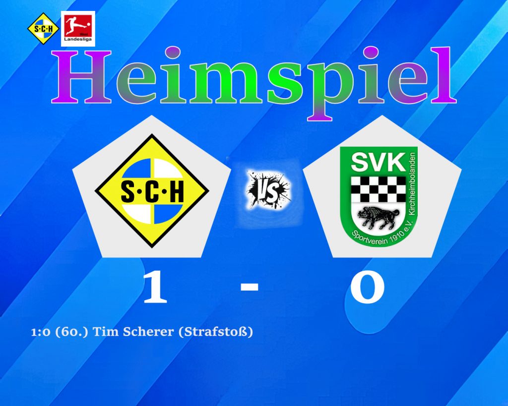 Ein ganz wichtiger, etwas dreckig erkämpfter und auch für die Moral ganz wichtiger Sieg gelang uns gegen eine starke Gastmannschaft. Der SV Kirchheimbolanden zeigte von Beginn an, warum sie die letzten vier Spiele gewannen, war in den ersten 25 Minuten die bessere Mannschaft, kam gegen unsere löchrige Abwehr zu einigen guten Torchancen und wir konnten nur mit einigem Glück einen Rückstand vermeiden. Danach war das Spiel bis zur Pause ausgeglichen, wobei auch wir zu einigen Halbchancen kamen. Nach der Pause waren wir weitestgehend spielbestimmend, konnten uns aber zunächst gegen die starke, körperlich robuste Defensive des Gegners kaum durchsetzen. Nachdem Kirchheimbolanden nur unseren Pfosten traf, holte der gewohnt agile Christof Seibel im Gegenzug nach einigen vergeblichen Versuchen mit tollem Körpereinsatz clever einen Foulelfmeter heraus. Der folgende perfekte Elfmeterknaller von Tim Scherer bedeutete die 1:0 in Führung. Danach war die Partie ausgeglichen, der Gast war weiterhin stets gefährlich und wir vergaben bei schnellen Kontern zwei glasklare Möglichkeiten zum vorentscheidenden 2:0. Letztlich zitterten wir uns mit hohem kämpferischen Einsatz bis zum erlösenden Schlusspfiff zum zwar nicht unverdienten Sieg, allerdings hätte das Spiel in Anbetracht der Spielanteile und Torchancen auch umgekehrt ausgehen können. /ck/